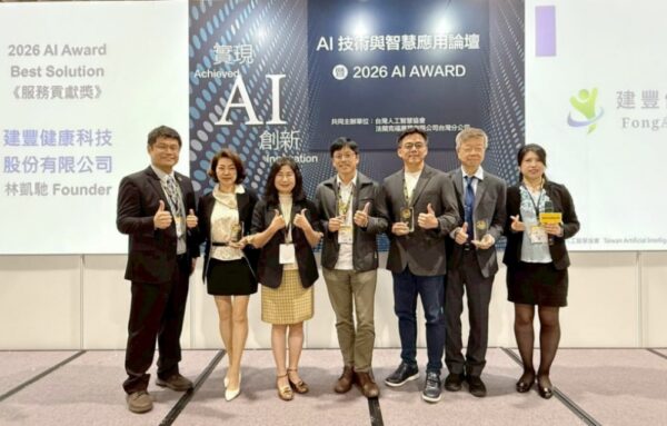 台灣人工智慧協會(TAIA)正式揭曉「AI Award 2026 Best Solution」獲獎名單。建豐健康科技(FongAI) 以「AI Safety Compliance」方案在激烈競爭中脫穎而出,榮獲 服務貢獻獎 。該技術不僅在台灣百處據點落地,更成功輸出新加坡與日本,展現台灣在高齡科技(Age-tech)與 AI 預防醫學領域的國際化競爭力 。