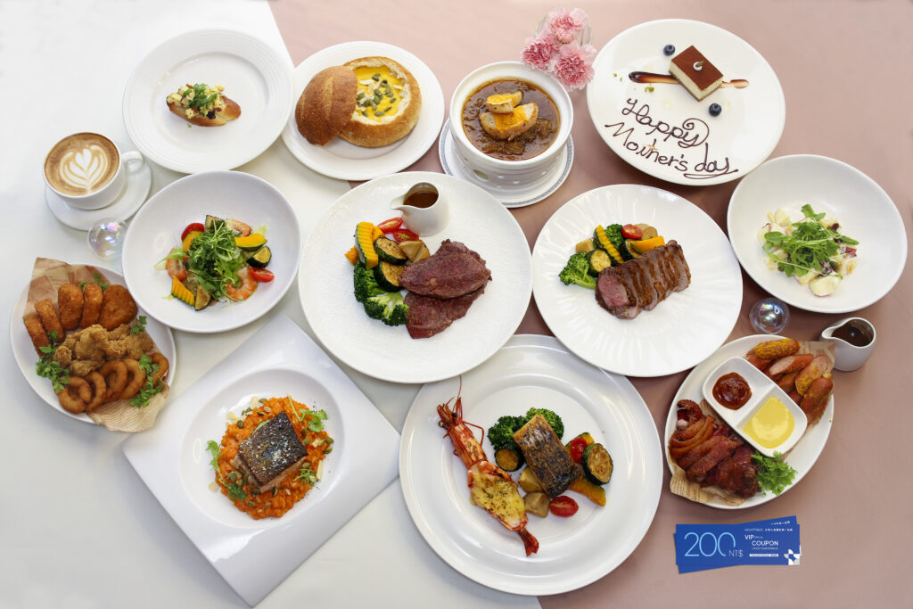 餐飲方面,3樓江南村與16樓海華樓於5月1日至3日及5月9日至10日推出母親節中式桌宴,並加贈6吋母親節蛋糕。菜色以高端食材結合養生概念,涵蓋台塑牛小排、蔥油玉露紅條斑、膠原烏參佛跳牆與松露銀絲海虎蝦等十道料理,強調澎湃與精緻兼具。3F覓舍全日餐廳則推出雙人與四人分享餐,鎖定小家庭與年輕族群,提供多元用餐選擇。