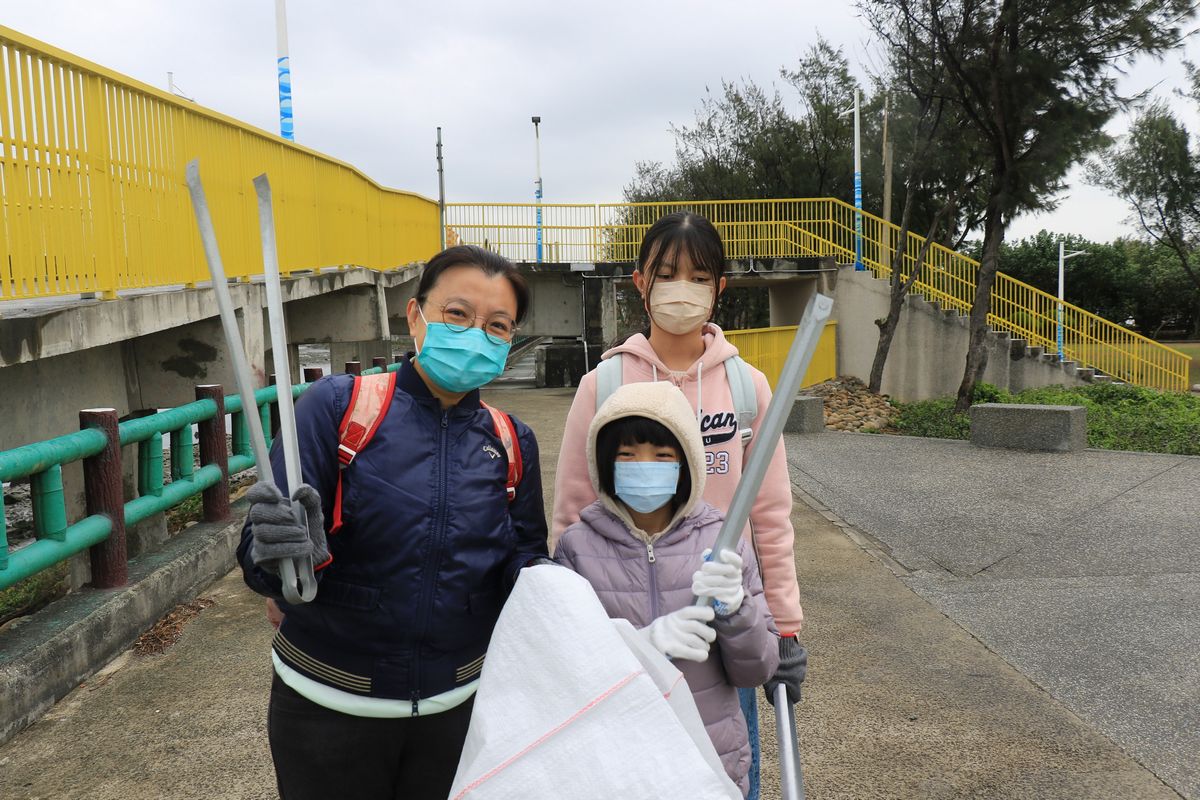 ►護理部教學護理師魏杏蓉帶著兩位小孩淨灘。