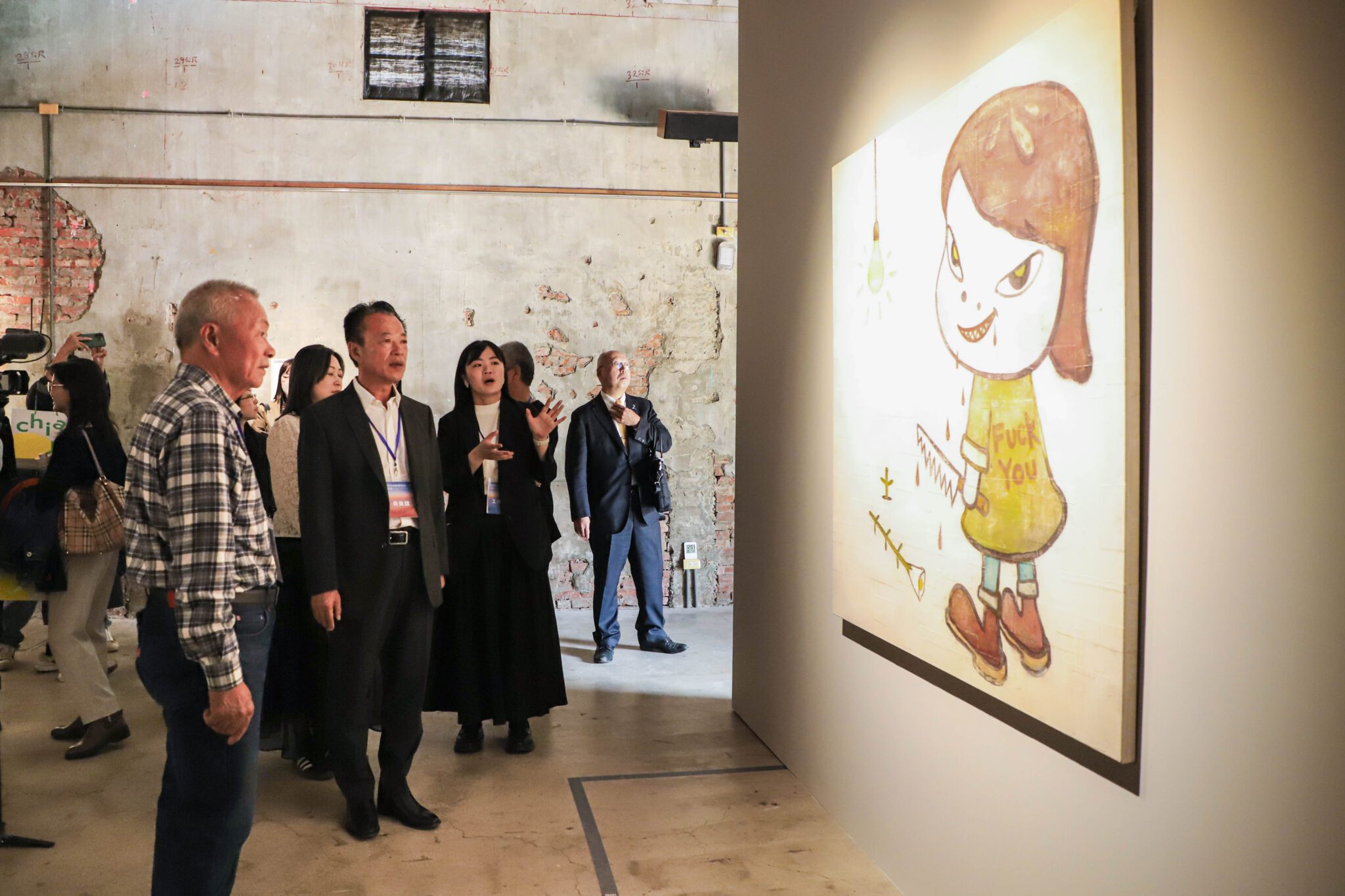 日本知名藝術家奈良美智舉辦在台10年巡展「跟著朦朧潮濕的一天去旅行」,第5站前往嘉義縣新港鄉展出,今12日在新港文化館25號倉庫盛大開展。