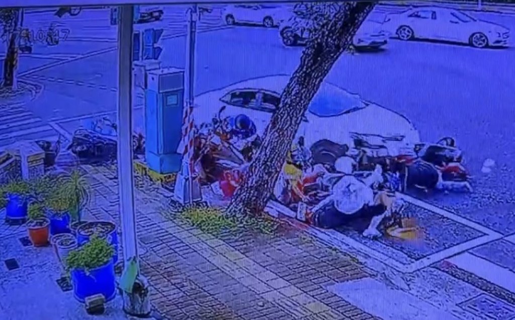 據悉,當時駕駛撞機車後,直接衝撞待轉區的民眾,造成「全倒」,甚至還有一名騎士腿部遭輾過。