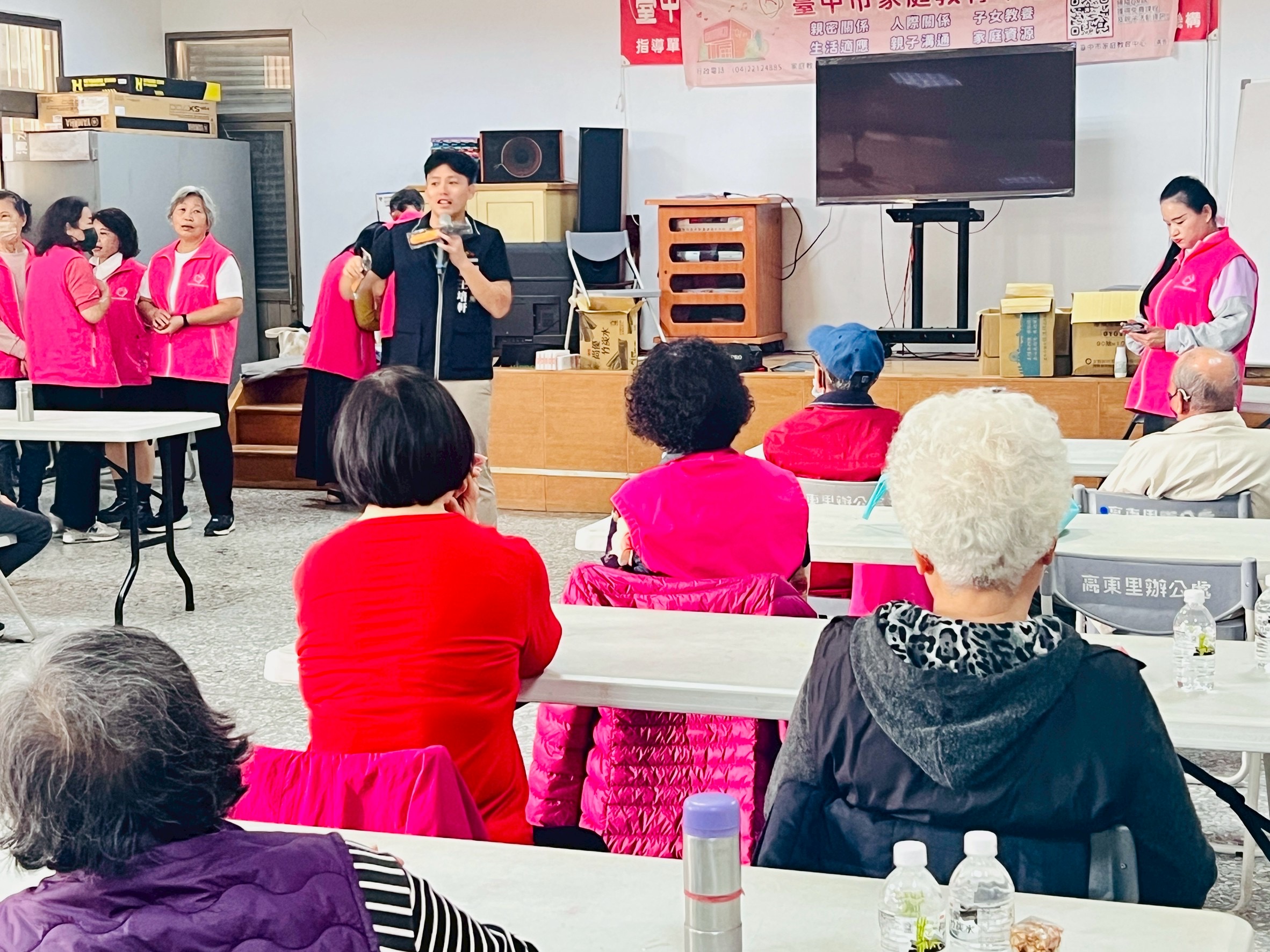 為提升長者夜間行走安全、打造高齡友善城市,在台中市長盧秀燕與市府民政局重視及指導之下,今(27)日清水區長蔡慶生率同仁分別前往國姓里及高東里社區的關懷據點進行「長者交通安全宣導」,並邀請里長及社區理事長共同參與,透過實際示範與互動體驗,提醒長輩遵守交通規則,同時致贈參與民眾反光臂帶,守護銀髮族清晨及夜間外出的安全,現場受到民眾一致好評。