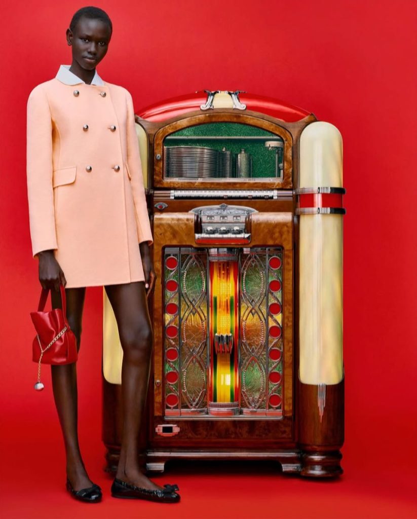 選擇"點播機"為亮點的Prada 節慶影像,既前衛又復古:當音樂響起,一種「被記憶照亮」的懷舊心情,幽幽嬝嬝⋯⋯