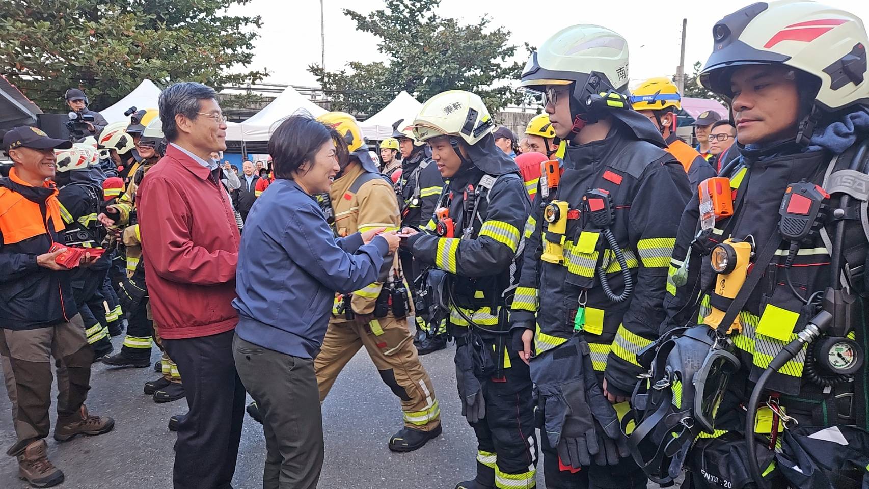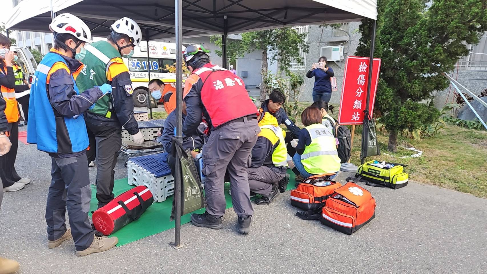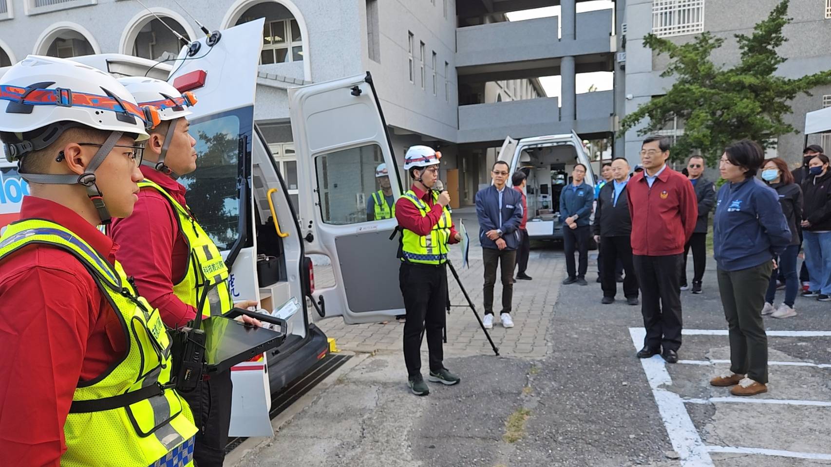 演練中亦模擬火勢擴大情境,現場隨即啟動消防局幕僚群組、人力物資支援及友軍支援,並設置後勤照護區,由救護人員監測消防員生命徵象,確保執勤人員在良好狀態下完成任務。此外,演習也展現了「義消先鋒員」政策的成效,義消弟兄展現熟練的操作技術,讓消防員能更專注於火場搜救,大幅提升整體分隊戰力。