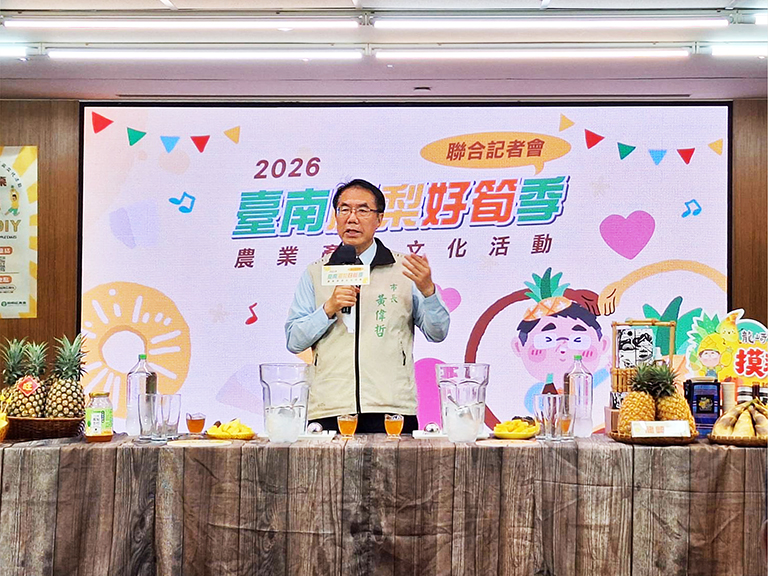 隨著初夏氣息來報到,臺南鳳梨、綠竹筍迎來豐收季,南市府今(14)日整合關廟、龍崎、新化三區,於永華市政中心舉辦「2026臺南鳳梨好筍季」聯合行銷記者會,市長黃偉哲預告首場市集活動將於4月25日(六)在關廟山西宮登場,邀請民眾走入產區「食當季、吃在地」,品嘗最道地的臺南風味。
