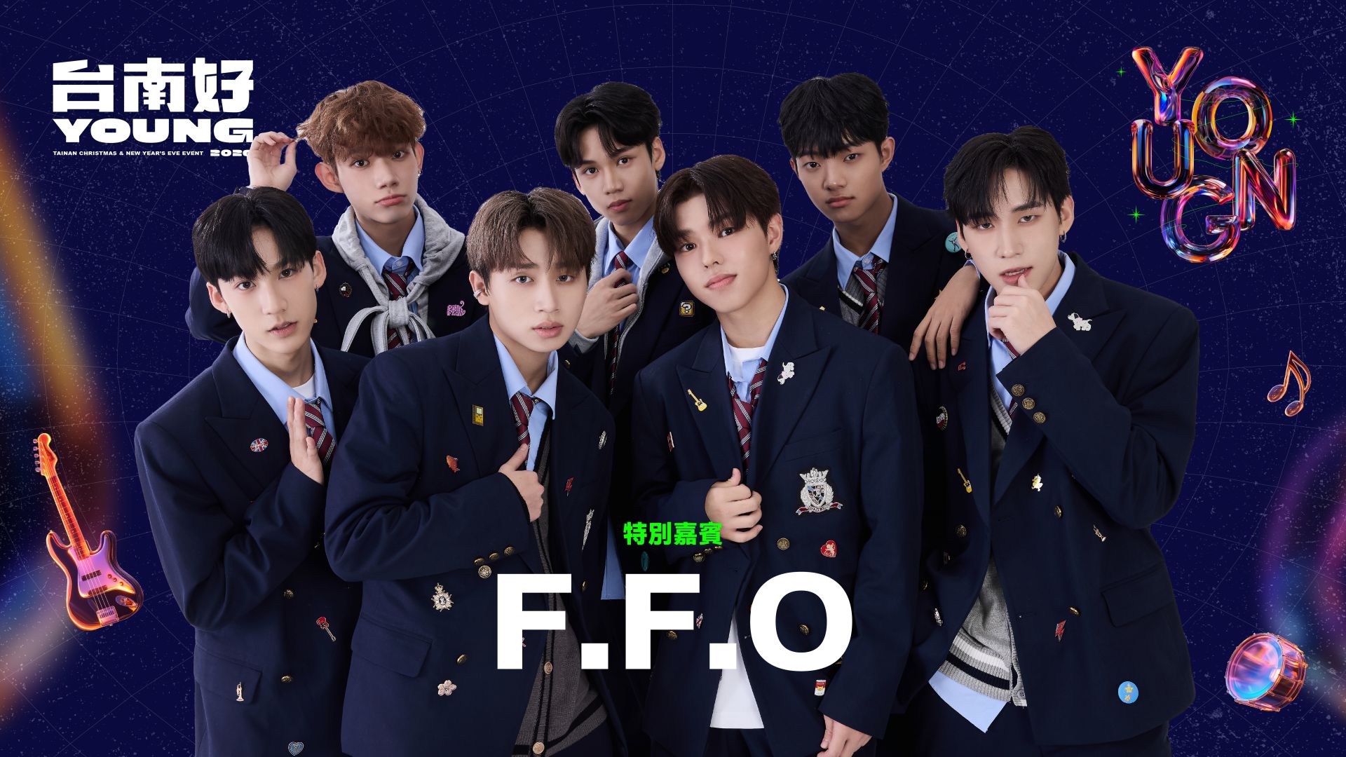 台南年底最盛大的城市派對準備開跑!台南市政府今(18)日正式公布「2026台南市耶誕跨年系列活動」,從11月29日起連續六週、橫跨耶誕到跨年,共規劃六場大型活動,包括三場親子主題活動與三場演唱會。市長黃偉哲更與新世代冠軍男團 F.F.O 一同亮相,提前替活動暖場,現場氣氛超嗨。