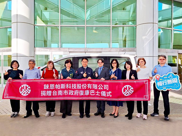 錸恩帕斯科技股份有限公司捐贈一輛復康巴士回饋地方,今(31)日於永華市政中心舉行捐贈儀式,臺南市長黃偉哲代表受贈並致贈感謝狀,感謝企業以實際行動支持市府照顧弱勢市民的施政理念。