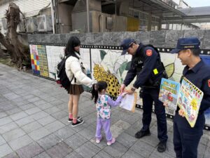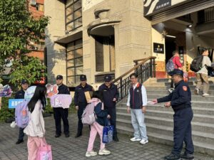 除交通安全維護外,警方亦利用開學日同時進行校園安全宣導,內容涵蓋行人友善觀念、識詐防騙、婦幼安全及跟蹤騷擾防制等重點,透過淺顯易懂的方式向學童說明自我保護觀念,提醒勿隨意與陌生人接觸,遇到可疑情況應立即告知師長或撥打110報案。現場並發放預防犯罪宣導品,加深學童印象。