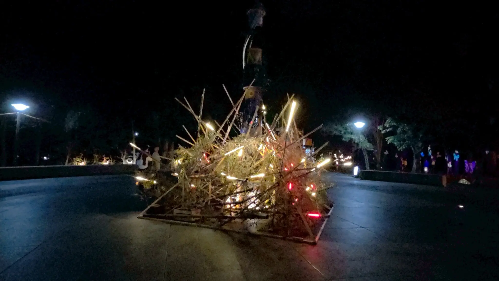 本屆主燈及各大主題燈區也正式點亮,主燈「眾心之聚」設於中心碑三角點,以竹構結合紅色光影環繞「台灣之心」,在夜晚成為最醒目的存在,象徵鎮民凝聚的力量與熱情,歡迎來自各地的民眾到埔里賞燈旅遊,還有4個由埔里在地藝術家帶領社區及孩子共同創作燈區,大量運用森林的元素,包括樹木、土壤等天然元素,並啟用紫光系統及環保素材,活動結束後還給森林乾淨的面貌李翌綸老師的「折光・中心」以「地理中心」為靈感,透過透明球體與光線折射,呈現白天與夜晚截然不同的光影樣貌;「下雨的雲與開出的花」是擅長陶藝創作的黃筠筑老師,以雲與花為意象,將燈光化作落在土地上的雨水,描繪生命在滋養中慢慢生長的畫面;廖珮如老師的「蝶映埔里」以埔里引以為傲的蝴蝶生態為主題,結合在地生態特色、社區與孩子的創意,邀請大家看見家鄉的自然樣貌;而由黑炭、眉毛老師帶領創作的「夜獸」,則以夜晚森林裡的小小生命,陪伴民眾走進夜色之中。