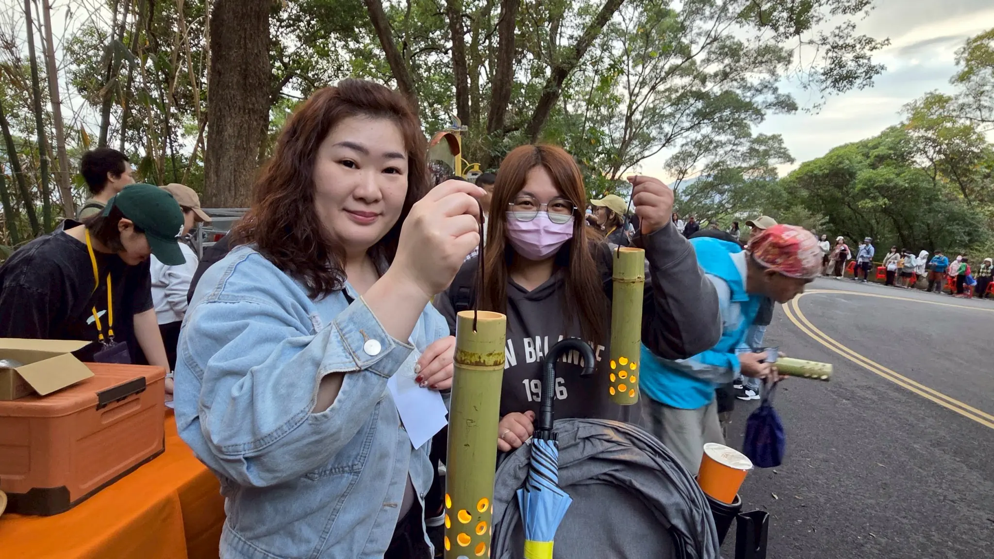 現場也設置敲鐘區「敲亮埔里」,在台灣的中心許下心願,輕敲祝福之鐘,鐘聲在森林裡迴盪,也把祝福傳遞給小鎮,還能透過自拍凸透鏡,讓賞燈民眾居高臨下將埔里夜景一起入鏡;今年提燈延續竹材特色,設計為火把造型,可手持也可提掛,上面有埔里吉祥物「噗哩」騎木馬圖樣,象徵馬到成功,下午2時不到,即有大批民眾排隊準備領取限量600個竹製提燈,5時30分正式發放也瞬間秒殺。