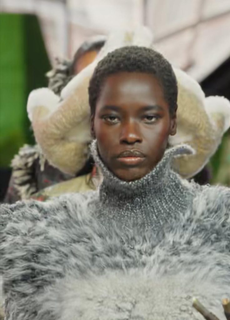 格紋套裝與雕塑肩線帶著強烈的結構感,宛如現代建築;頭套、披肩與斗篷卻讓人聯想到中世紀的修道院或民俗服飾;而某些材質與比例又散發出未來感。