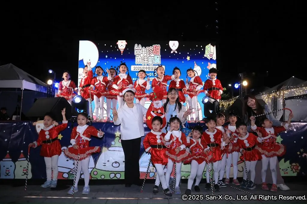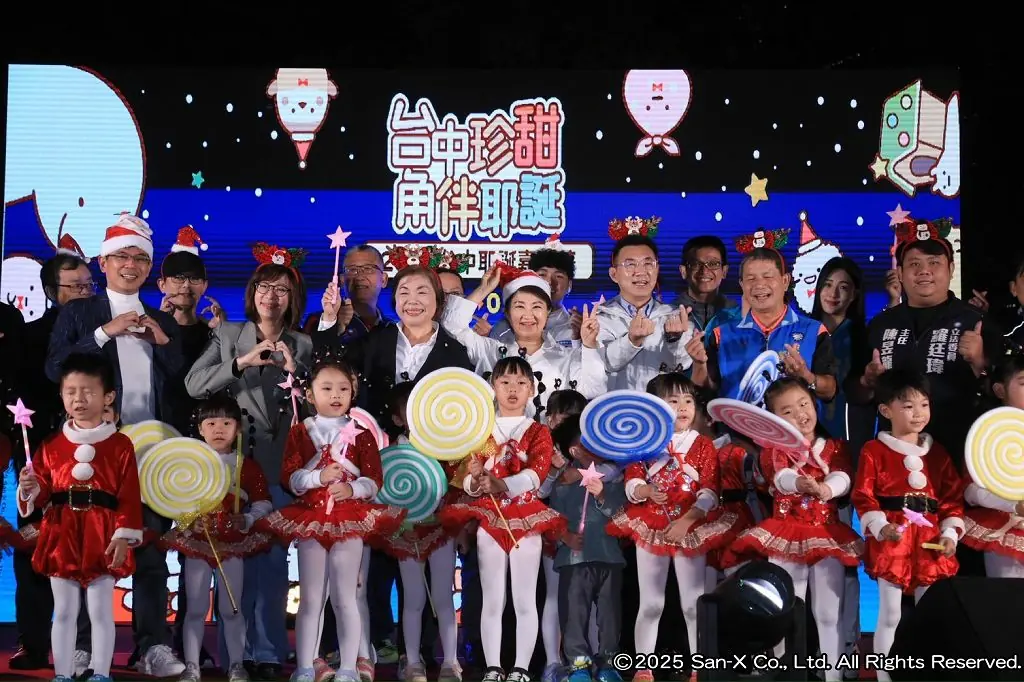 2025台中耶誕嘉年華以日本人氣角色IP《角落小夥伴》為主題,在舊火車站前佈置高達18公尺的「耶誕珍甜」耶誕樹,柳綠川沿岸更設置不同主題燈飾,活動未開幕即吸引許多民眾搶拍。台中市長盧秀燕今(12)晚出席點燈儀式,在現場跟民眾一同倒數,時間一到耶誕樹瞬間點亮夜空,宣告嘉年華正式開跑,將一路展至明年元旦,展期歷年最長。
