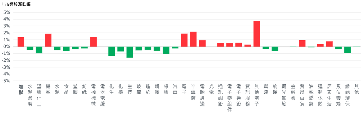 台積電強攻3%,盤中最高攀至1495元,電子權值股同步助攻,鴻海、緯創股價勁揚4%以上,鴻海股價再創17年新高,廣達、聯詠、緯穎、聯發科、聯電穩居紅盤。被動元件話題發燒,多檔個股同步亮燈,指標股國巨強漲5%,朝200元大關邁進,華新科同步漲逾4%。