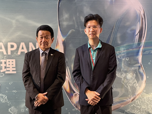 家事鍍技術總監 陳金侑(右)與 NANOBEST 日本 CEO Takashi Umeki(左)於合作發表會現場合影,攜手宣布引進國際級光觸媒專利技術,打造台灣居家環境防護新標準。圖/朱立君攝