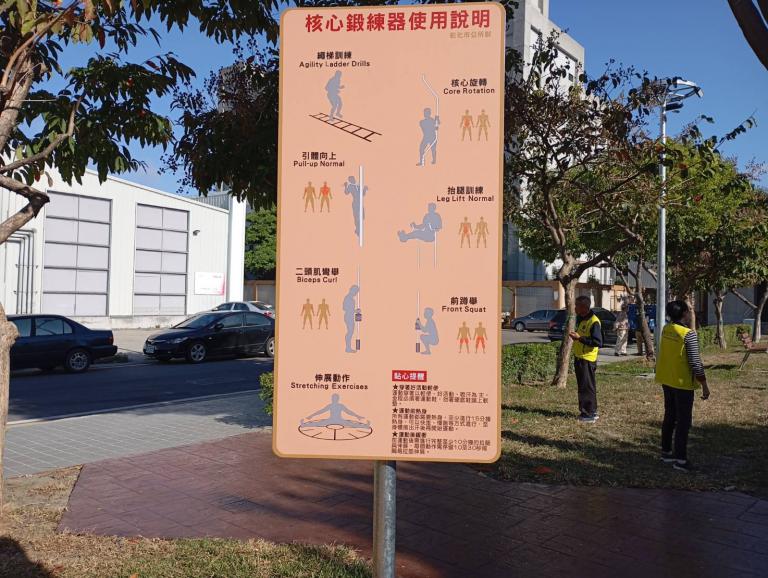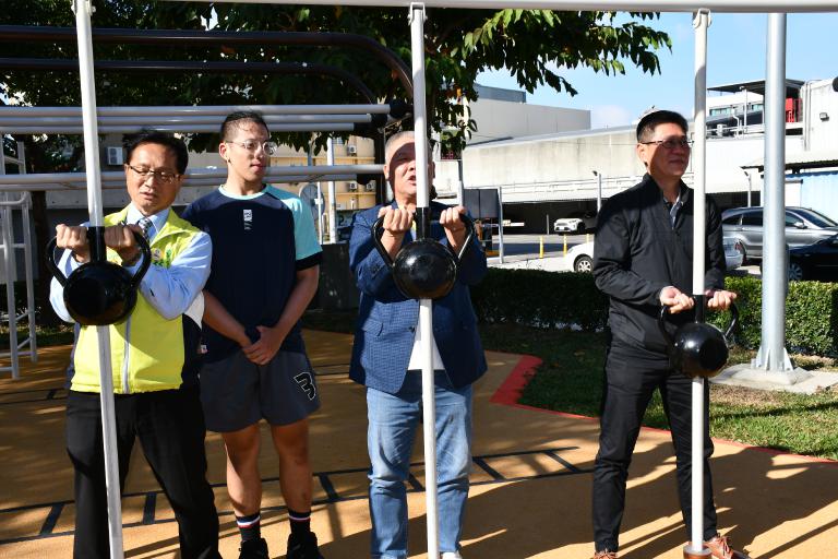 最受矚目的亮點,是設置了彰化第一座戶外健身設施區,配備多項專業體能訓練器材,涵蓋肌力、伸展與核心穩定等訓練模組,滿足青壯族群休閒健身需求,也提供年長者維持日常肌耐力的設備,體現市公所推動「走出家門就能運動」的理念,降低運動門檻、提升規律運動機會。
