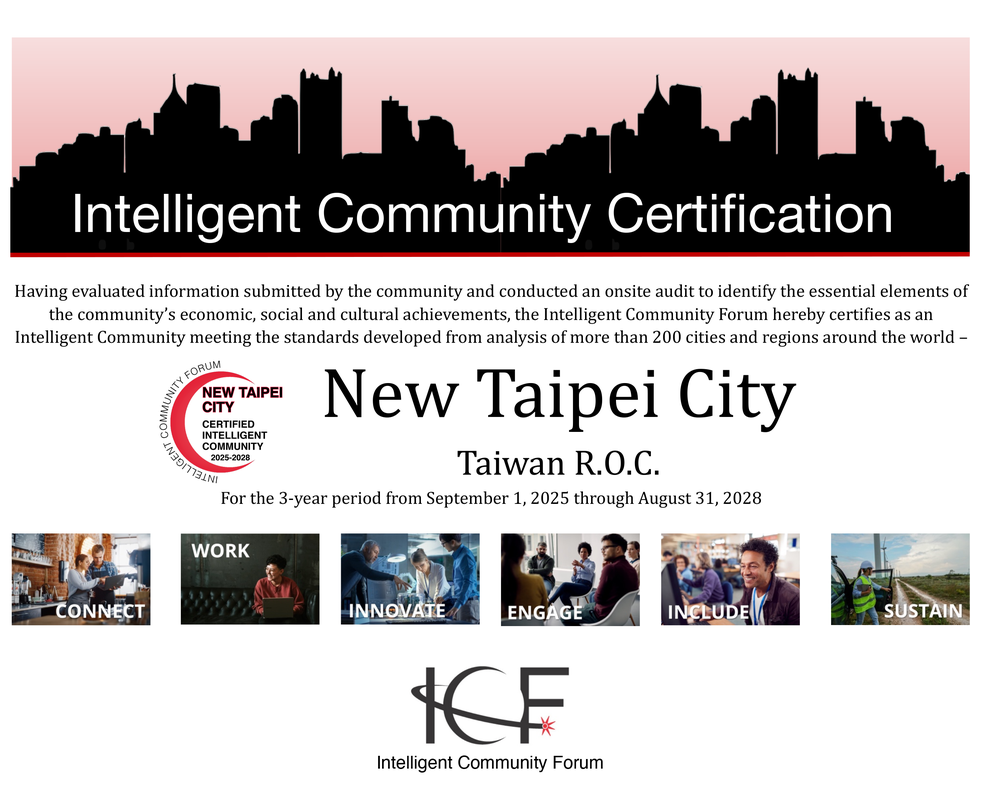 新北市屢屢獲得國際智慧城市獎項的肯定,源自多年紮實的智慧治理累積,也是與400萬市民共創的成果。2023年,新北率先通過ICF國際智慧城市評比,成為全球首座取得「完整智慧城市認證」的城市。2025年,ICF共同創辦人Robert Bell更親自訪臺,檢核12項專案並進行實地訪查,逐一檢視市府在公共參與、永續治理、AI運用等面向的執行成果。最終,ICF正式認可新北市已建立完整、有效且可持續運作的智慧城市機制,並宣布成為全球第一個成功完成認證更新的城市。