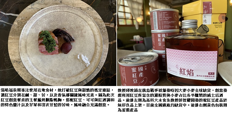 此外,高科大水食系也由教授侯智耀率領團隊開發紅豆為主題的多款創新加工食品,包括紅豆湯品、蜜紅豆、餡餅/包子/蛋捲等,另外也有機能性食品例如紅豆天貝、紅豆威士忌、紅豆益生菌。