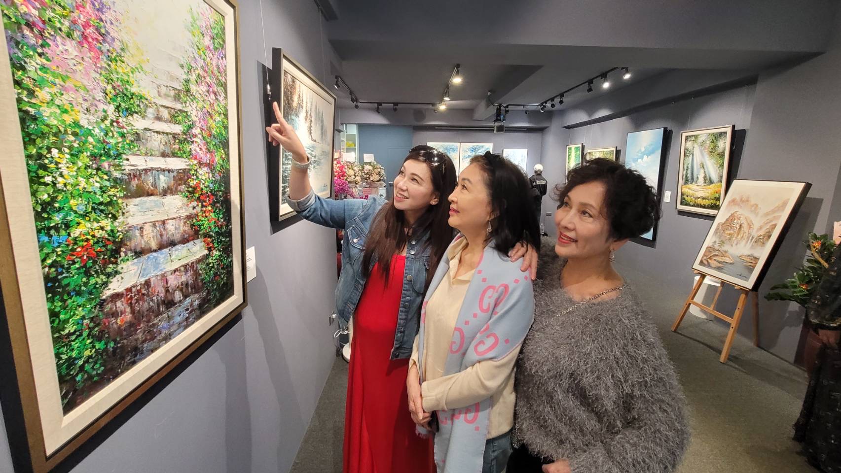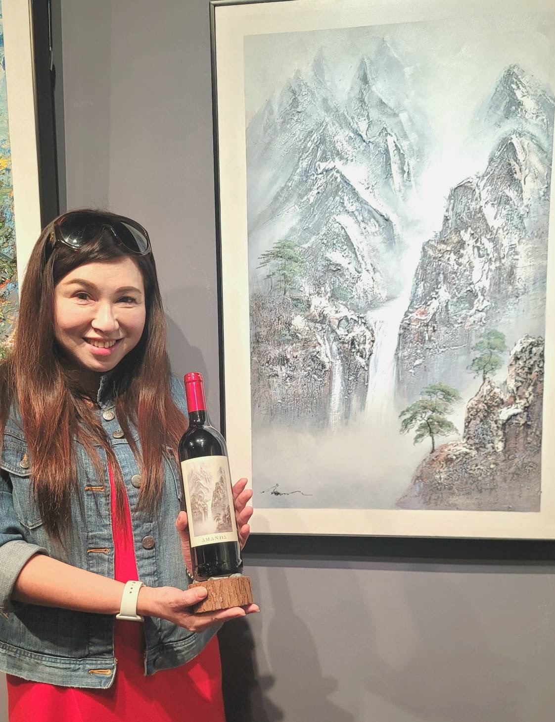 這次展出的作品,是從2015到2025年這十年間的創作。油彩的明亮、柔軟卻充滿彈性與可能性。開始大量創作油畫的起因是十年前開始教唐寶寶作畫,油畫的覆蓋、堆疊,讓我們能盡情在各種顏色中旋轉擁抱,也不害怕犯錯失敗,因而產生了抽象系列 ; 光與色交織,映照出生命的律動與靈魂的流轉。而因為一位好友在新冠疫情隔離期間,補給物資中少了一些顏料,而因緣誕生的水墨系列,其中一幅曾被南非的酒商選為酒標,那一支韻味深長的紅酒,就取名叫Amanda。