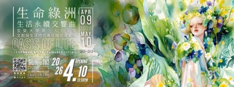 玄奘大學視覺傳達設計系將於4月9日至5月10日於國立新竹生活美學館藝海閣,舉辦第三人生大學-文創與生活時尚專班《生命綠洲:生活永續交響曲》聯合成果展,該專班邀請時尚設計學系師資共同授課、指導與聯展