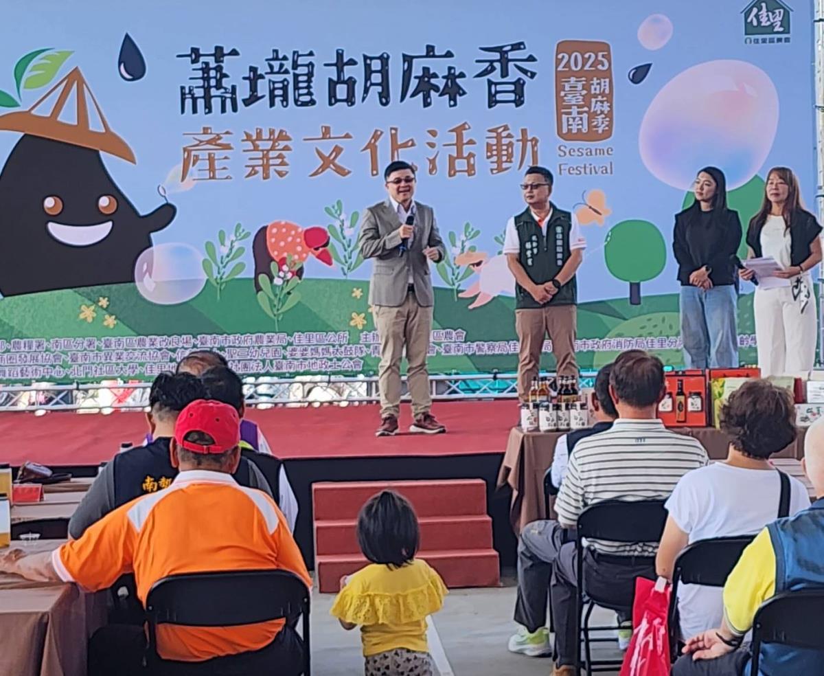 佳里區農會發展多樣化精緻農特產品,目前佳里地區胡麻栽培面積約110公頃,每年於8-9月初白露前後種植,90天後採收,每公頃產量約1,500-2,000斤,由佳里區農會收購加工製成胡麻油、胡麻糕、胡麻醬、胡麻粉、胡麻燒賣(豬肉及鮮蝦)、及季節限定胡麻花生酥等系列產品。