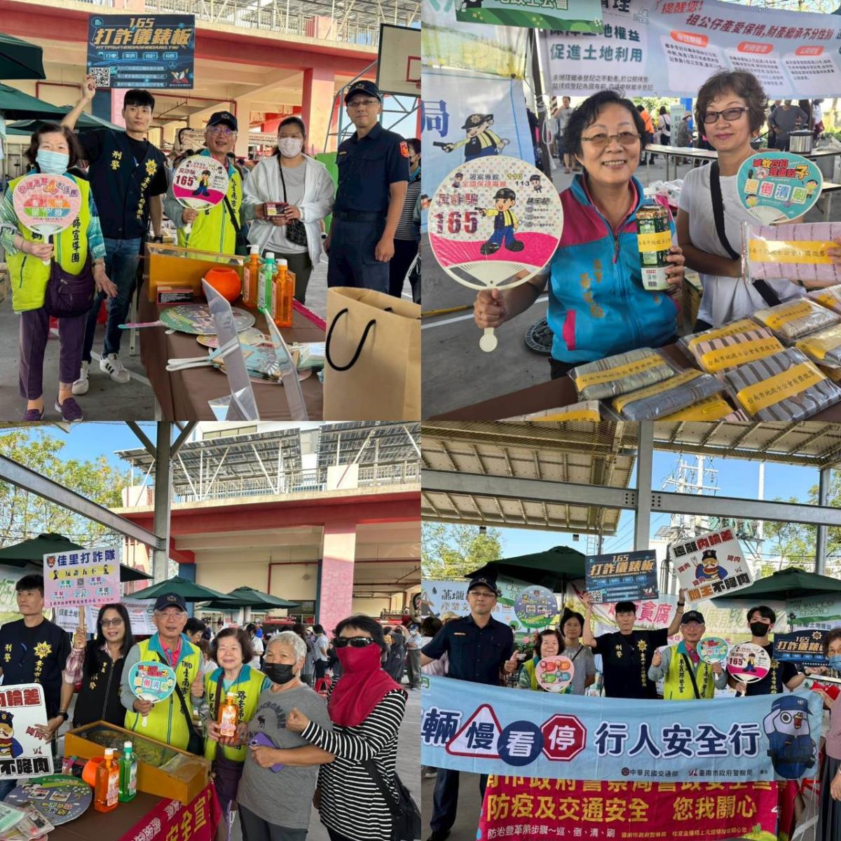 本次活動期間佳里警分局除於現場維護人車安全並應邀設攤宣導交通、反毒暨婦幼安全等宣導,副分局長李國榮分局宣導團巡佐許智惠、偵查佐吳哲維等人於現場設攤進行反詐騙及反貪腐等宣導,交通組組長張永坤以「道安小學堂」選取交通常識小選題,以有獎徵答方式宣導,現場民眾爭相排隊參與,氣氛熱絡且溫馨,藉由寓教於樂方式提升民眾交通安全常識,宣導成效良好,佳里警分局以多元方式實施各項宣導活動,已成為會場眾活動中的亮點之一。