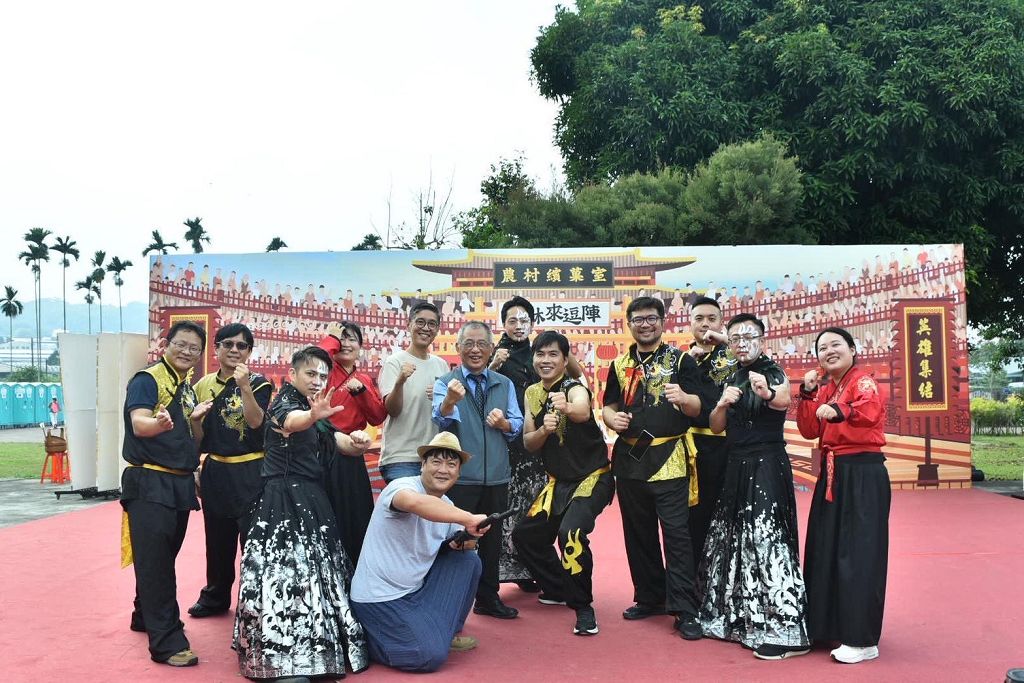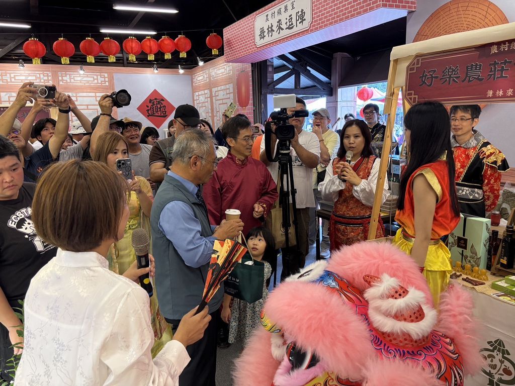 今年展館以「武林客棧」為創意概念,融合農村文化與武俠江湖元素,從展館外觀到互動體驗全面升級。懷舊桌椅、古早攤車服務台與復古街機重現農村市街風情,民眾可體驗武林變裝,一秒變身大俠拍出最俠氣十足的造型。戶外還設有「武林擂台」、「客棧老街」、「洋傘廊道」等拍照熱點,讓賞花與打卡一次滿足。開幕式以鼓聲揭幕,來自苗栗的舞空術劇團以武術結合劇場的表演象徵農村精神的剛柔並濟;隨後由新社中和國小KidOpera劇團帶來精彩的扮仙戲《大三仙會》與歌仔戲《盤絲洞》,融合民俗與藝術的,重現古早江湖熱鬧氛圍,掀起全場高潮掌聲不斷。